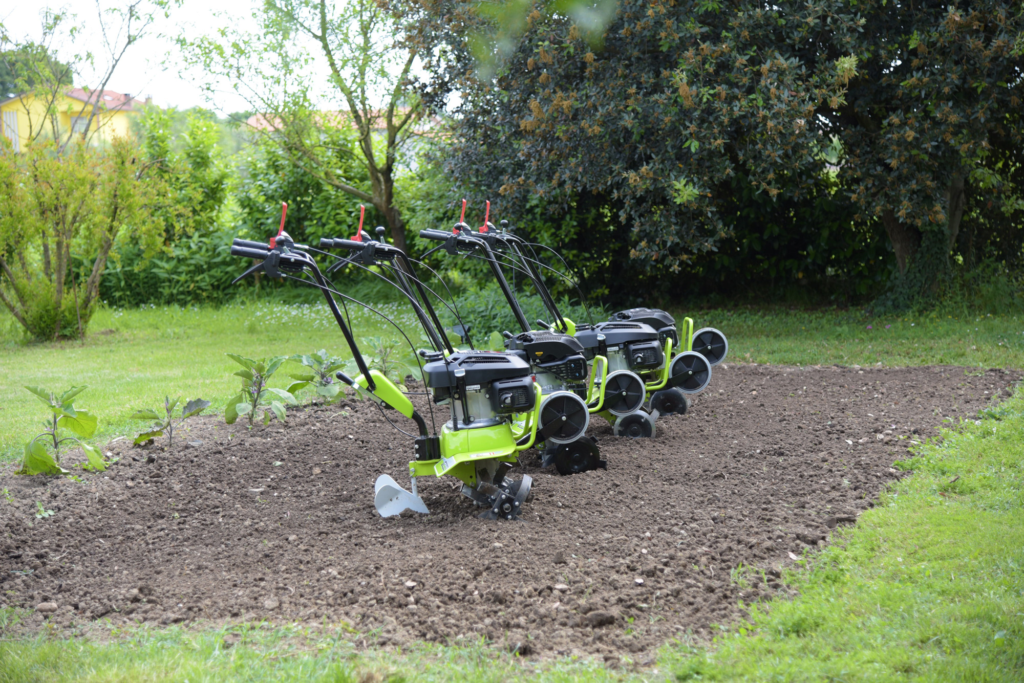 Der höhen- und seitenverstellbare Lenker erleichtert das Arbeiten auf engstem Raum oder in der Nähe von Hecken, während das Transportrad und der verstellbare Sporn den Transport und die Tiefeneinstellung vereinfachen. Optionale Funktionen wie das Kit zur Verengung der Fräse auf 35 cm und der Furchenzieher erhöhen die Vielseitigkeit.