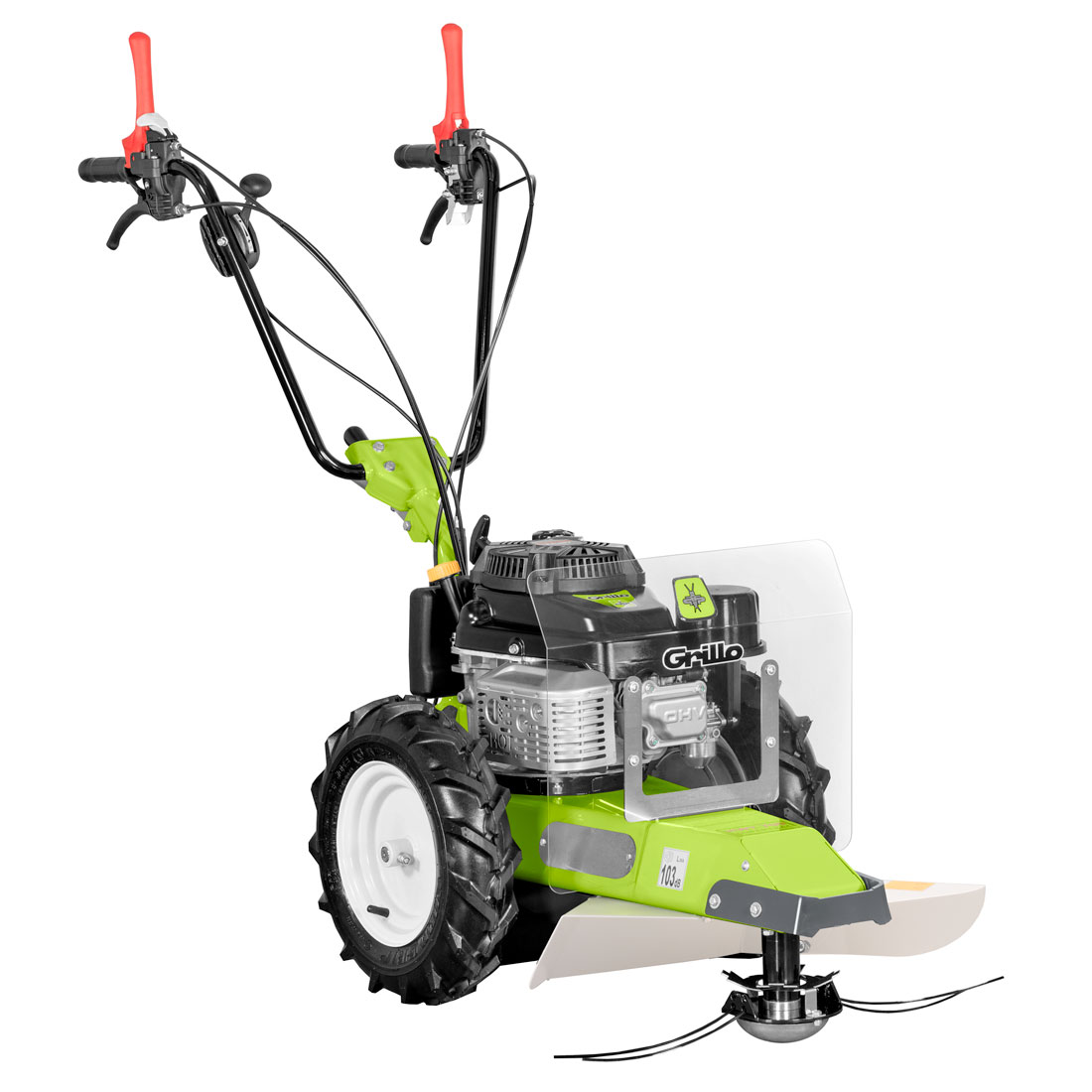 Der Luftfilter mit doppeltem Element für einen intensiven und professionellen Einsatz geeignet. Zur Entfernung von Grashalmresten und damit der Motor sauber bleibt, ist er auch mit einem drehenden Schutzgitter ausgestattet. Das Getriebe besteht aus Zahnrädern im Ölbad und hoch widerstandsfähigen Riemen.
