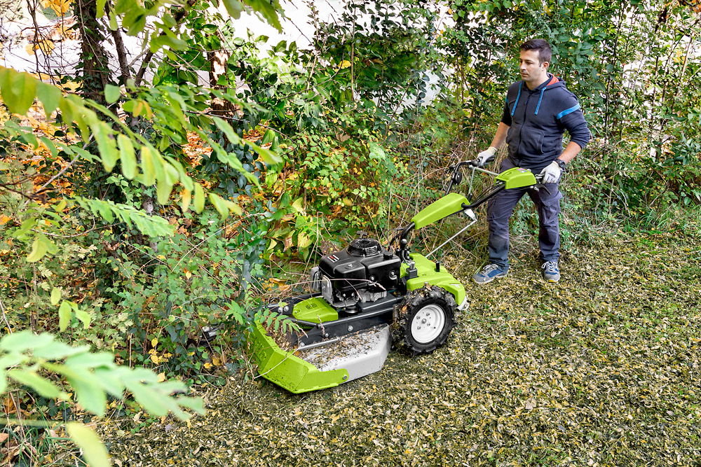 Also under extreme conditions such as a very steep slope or uneven ground, mowing is easy thanks to the 4 ply wheels and equipped with differential lock.