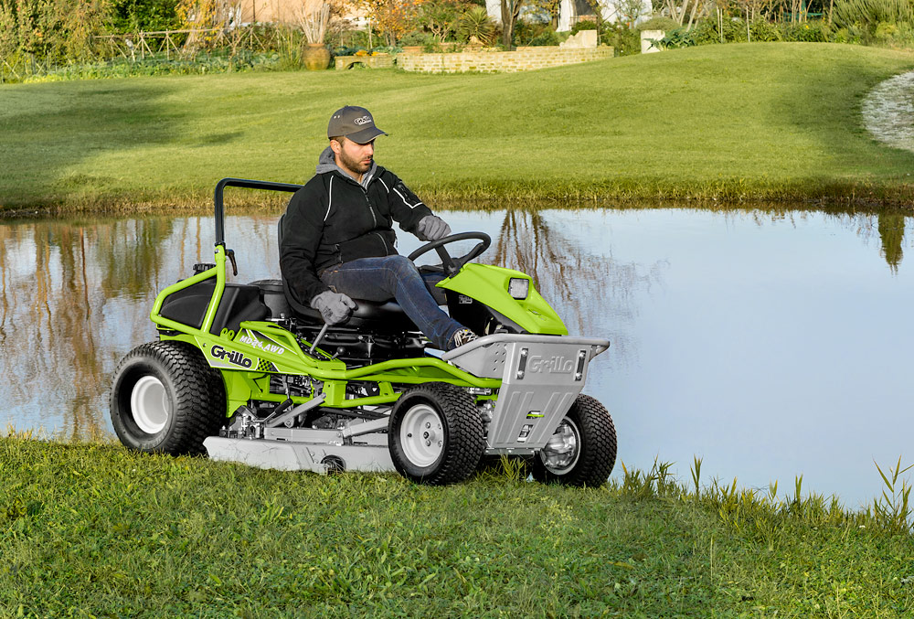 El asiento así como el motor endotérmico de eje vertical posicionado muy bajo, el plato ventral puesto exactamente entre las 4 ruedas y la batería puesta encima del eje delantero hacen la máquina excepcionalmente estable.