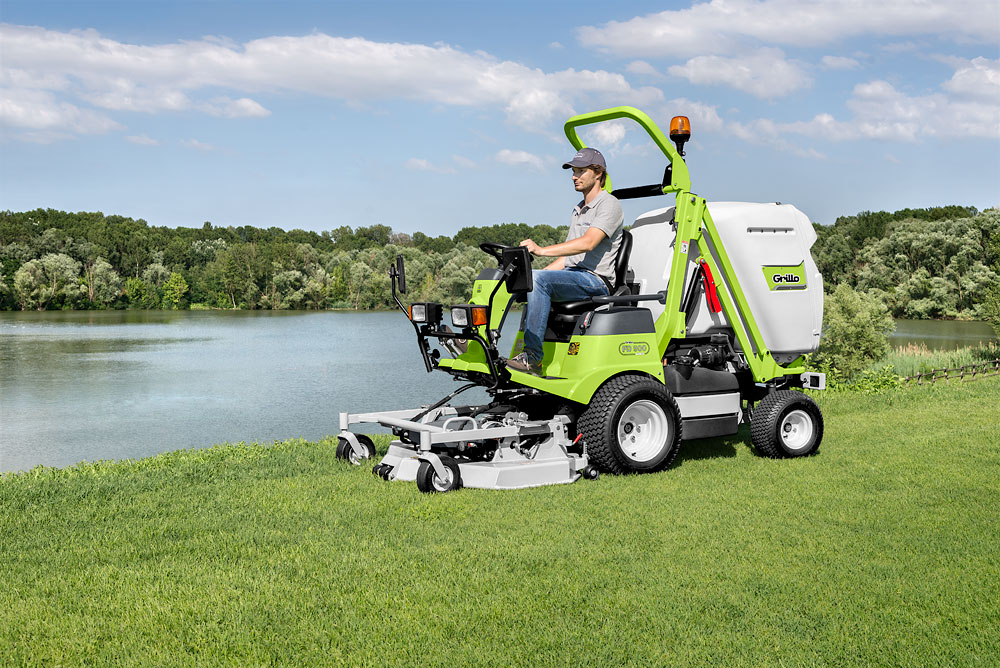 Il piatto di taglio frontale da 126 cm è di nuova concezione ed eccezionalmente robusto, può raggiungere i punti più difficili (sotto piante, siepi, etc..). Il sistema di taglio è a 3 lame, 2 lame più lama centrale anteriore, questo sistema a carico diretto garantisce grande qualità di taglio ed una bassa rumorosità. Le lame principali del piatto incorporano due turbine per assicurare una elevata capacità di raccolta e un’ottima qualità di taglio anche in caso di erba alta e umida, tipica condizione dei primi tagli primaverili. La regolazione dell’altezza di taglio è idraulica e centralizzata, comandata con un pulsante elettrico dal posto di guida.