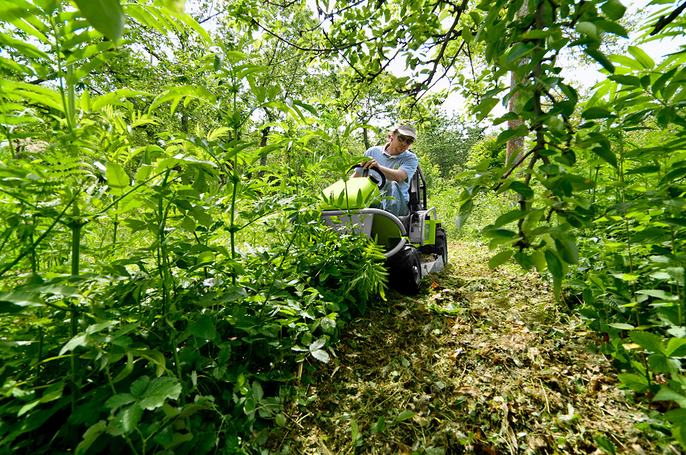 Le rayon de braquage extrêmement réduit de seulement 38 cm permet de se déplacer dans des espaces confinés. La hauteur au sol réduite rend le Climber 9.18 idéal pour les travaux sous les arbres.