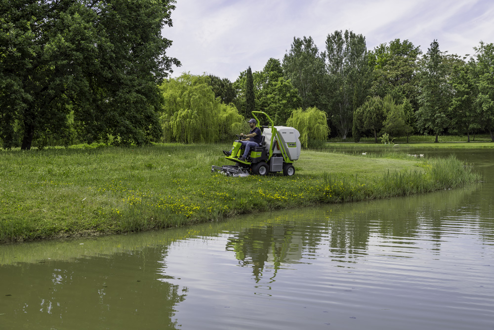 L’essieu arrière oscillant et la coupe frontale indépendante offrent une optimale qualité de coupe même dans les zones irrégulières. Les grandes roues sur les deux essieux et une conception soignée visant à contenir le poids de la machine réduisent au minimum le piétinement de la pelouse même en cas de bac plein ou de sol humide.